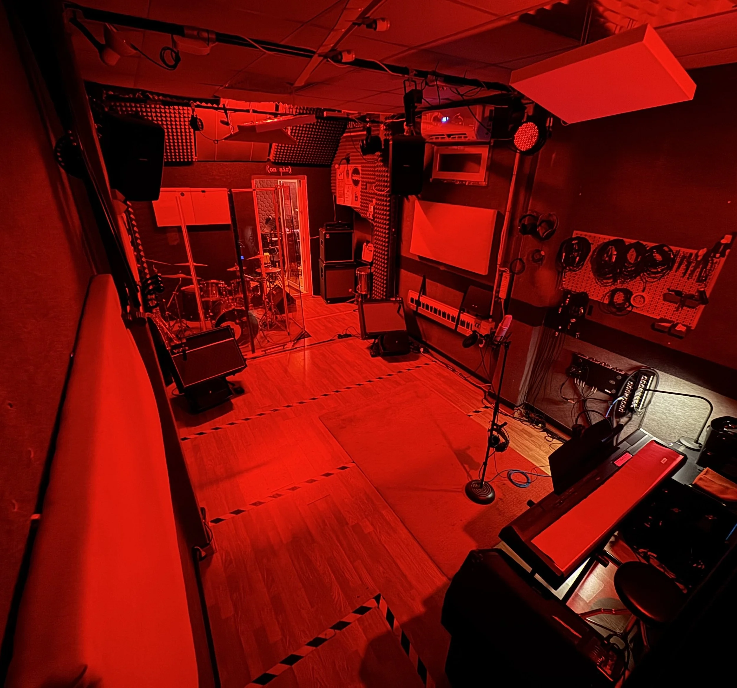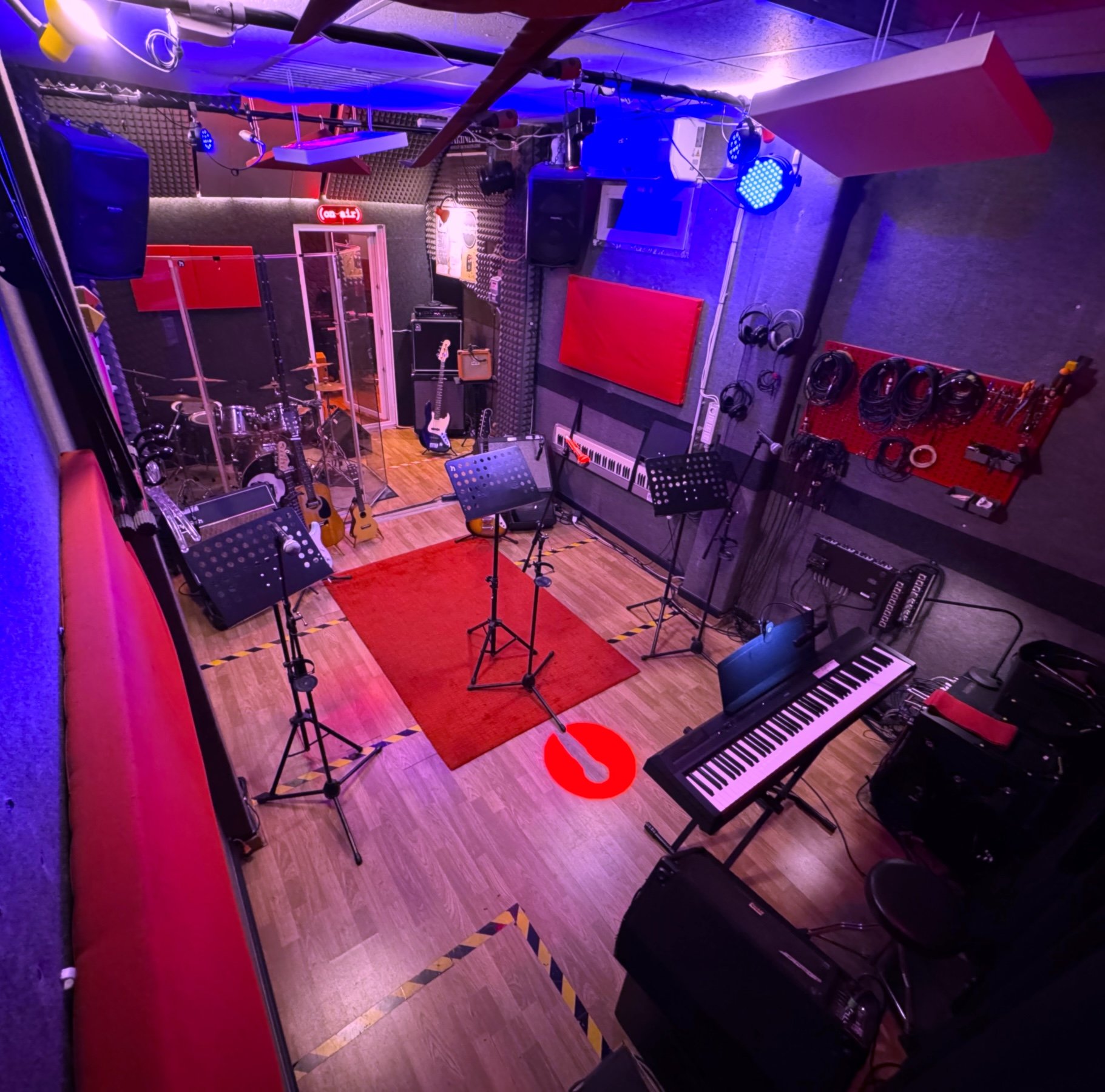 La sala - ospita fino a 7/8 musicisti, completa di ogni accessorio, aria climatizzata e sanificata, Wi-Fi gratuito.